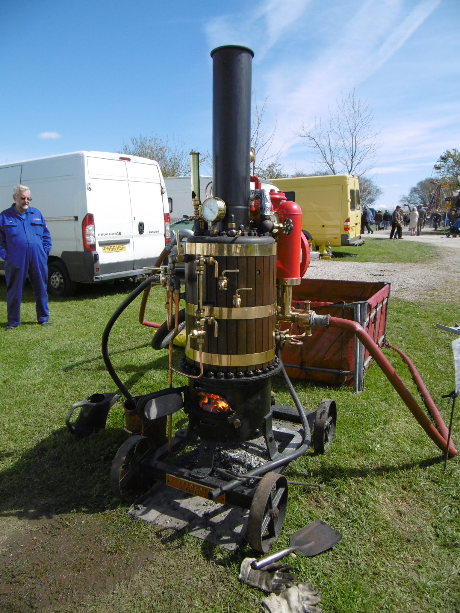 There’s a chugging sound coming from something part wood, part brass, as it pumps water. One of several ordered in 1944 for the Royal Navy its job was to pump fresh water from tanks in ships to feed the boilers. The owner opens up the firebox for my picture – I’m embarrassed I can only point and click, but he doesn’t seem to mind.