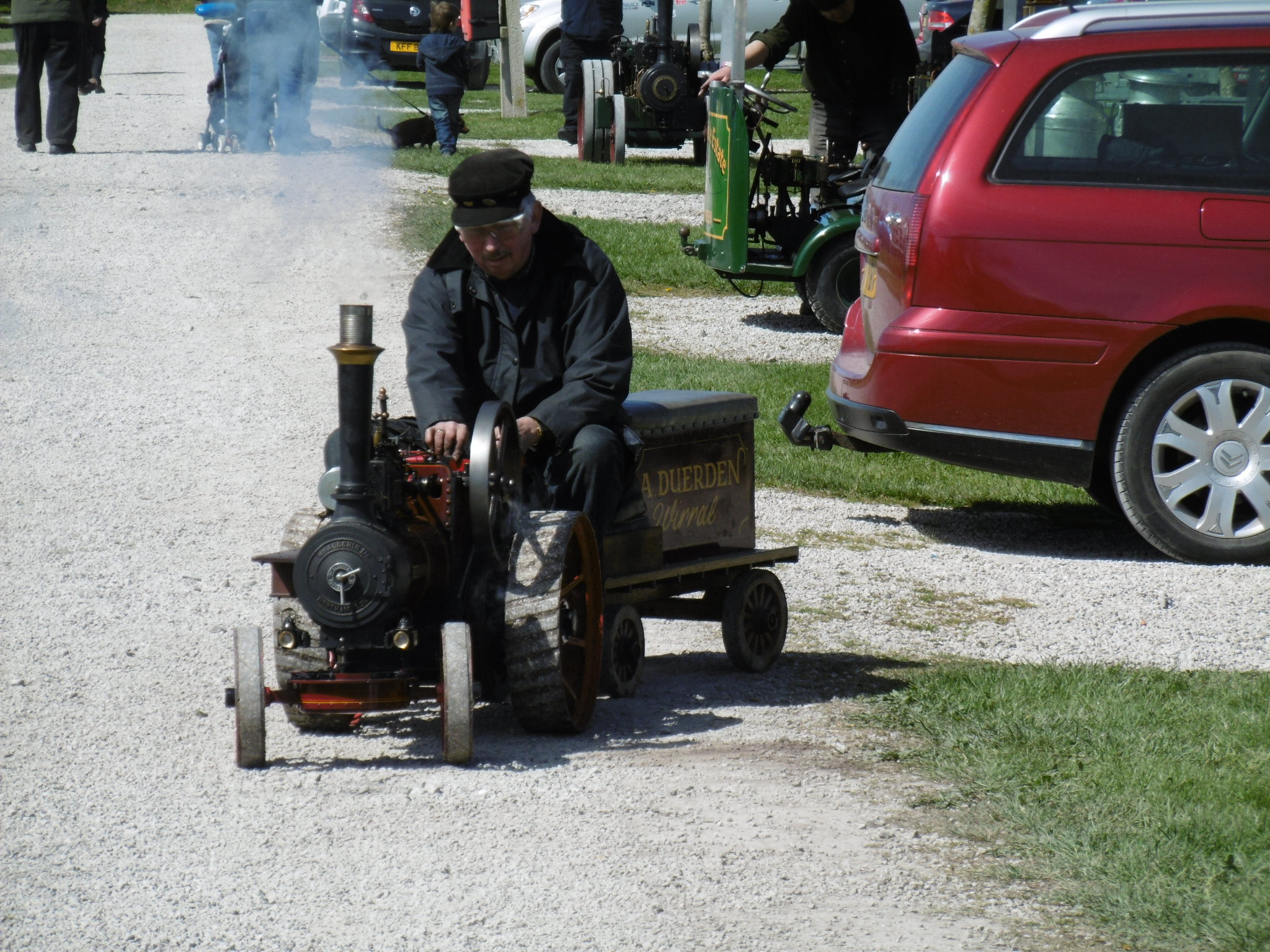 It’s a sunny Sunday in Southport. We’ve parked pearly white Issy (our new car) in a field. And there’s steam up ahead.