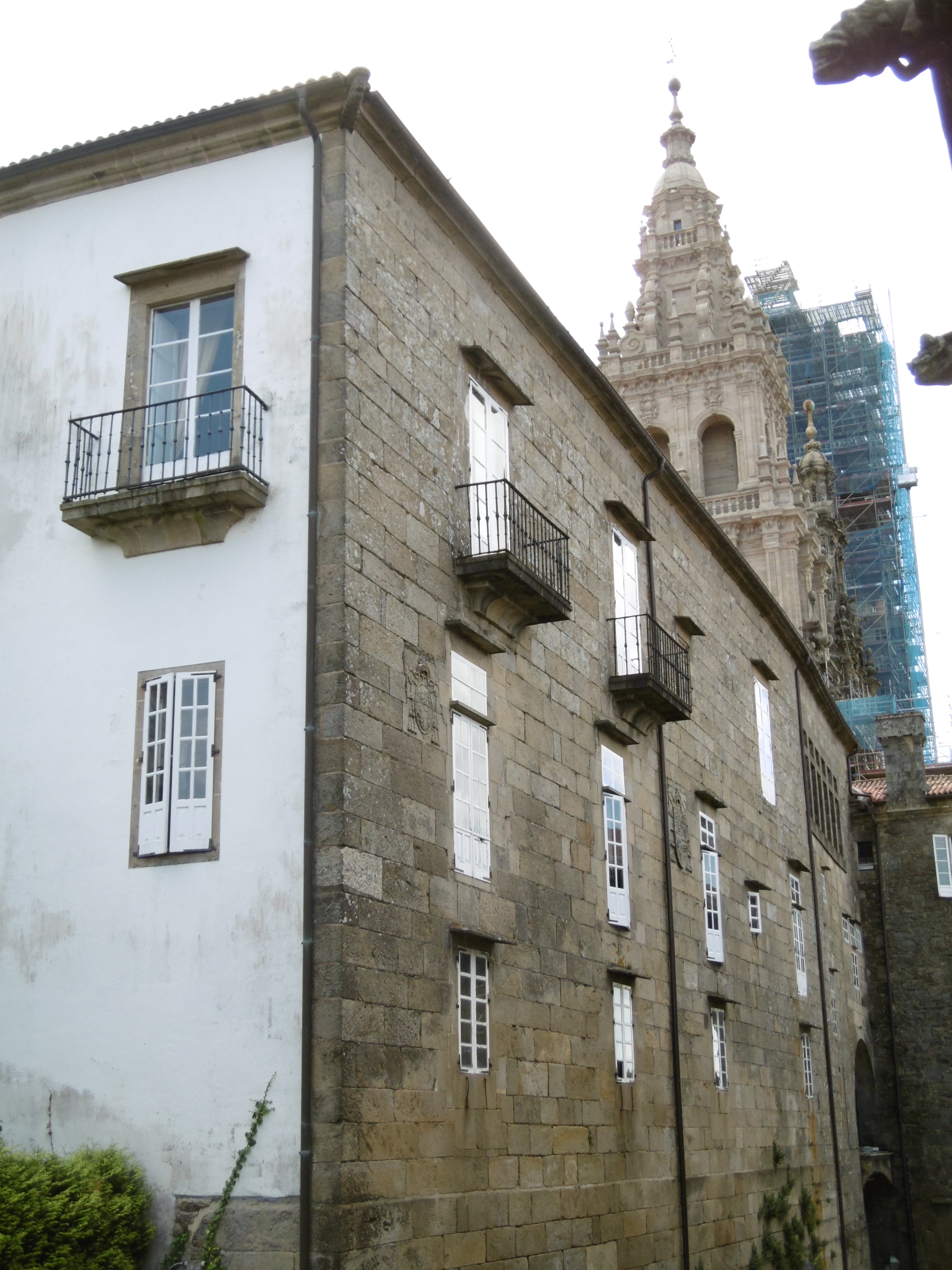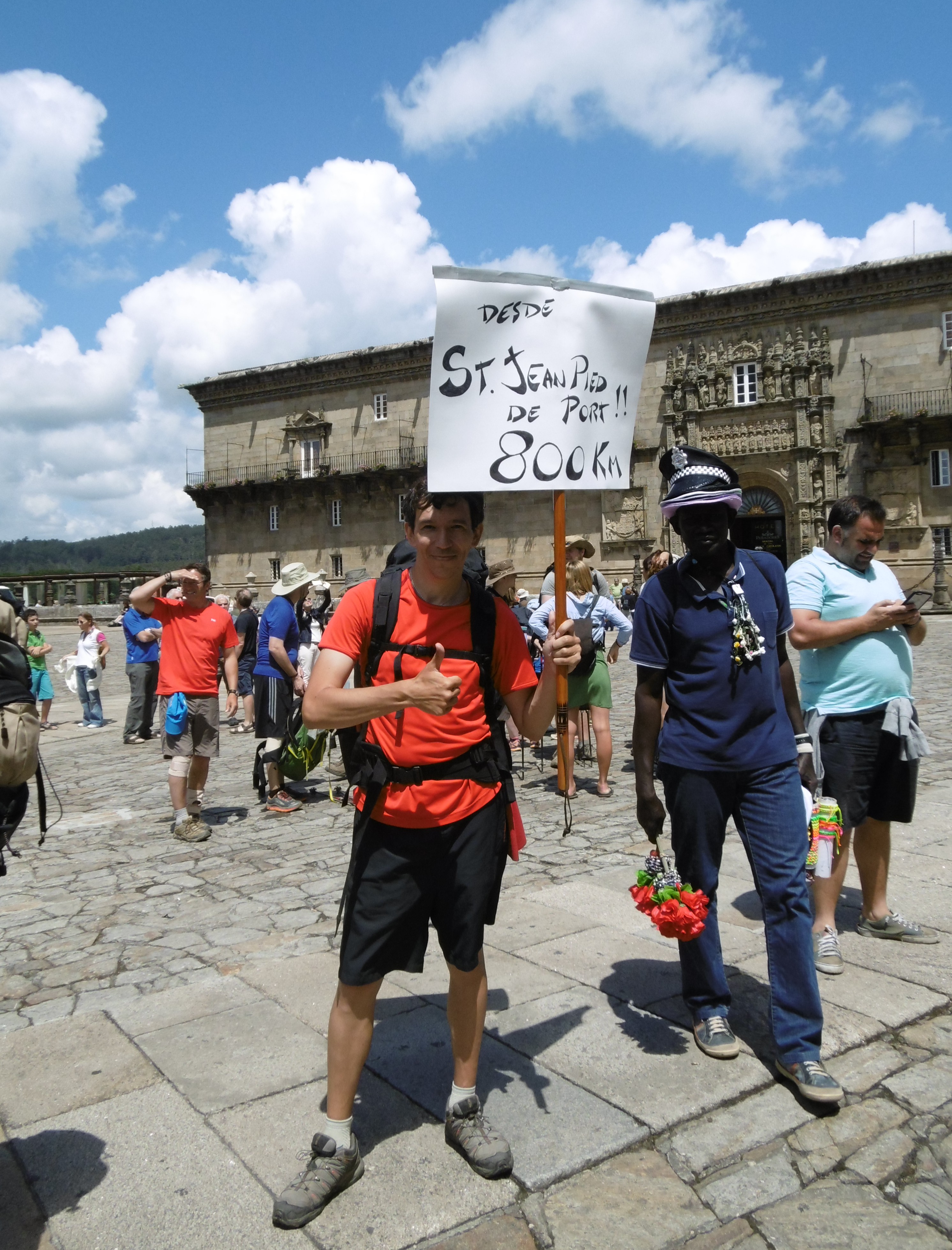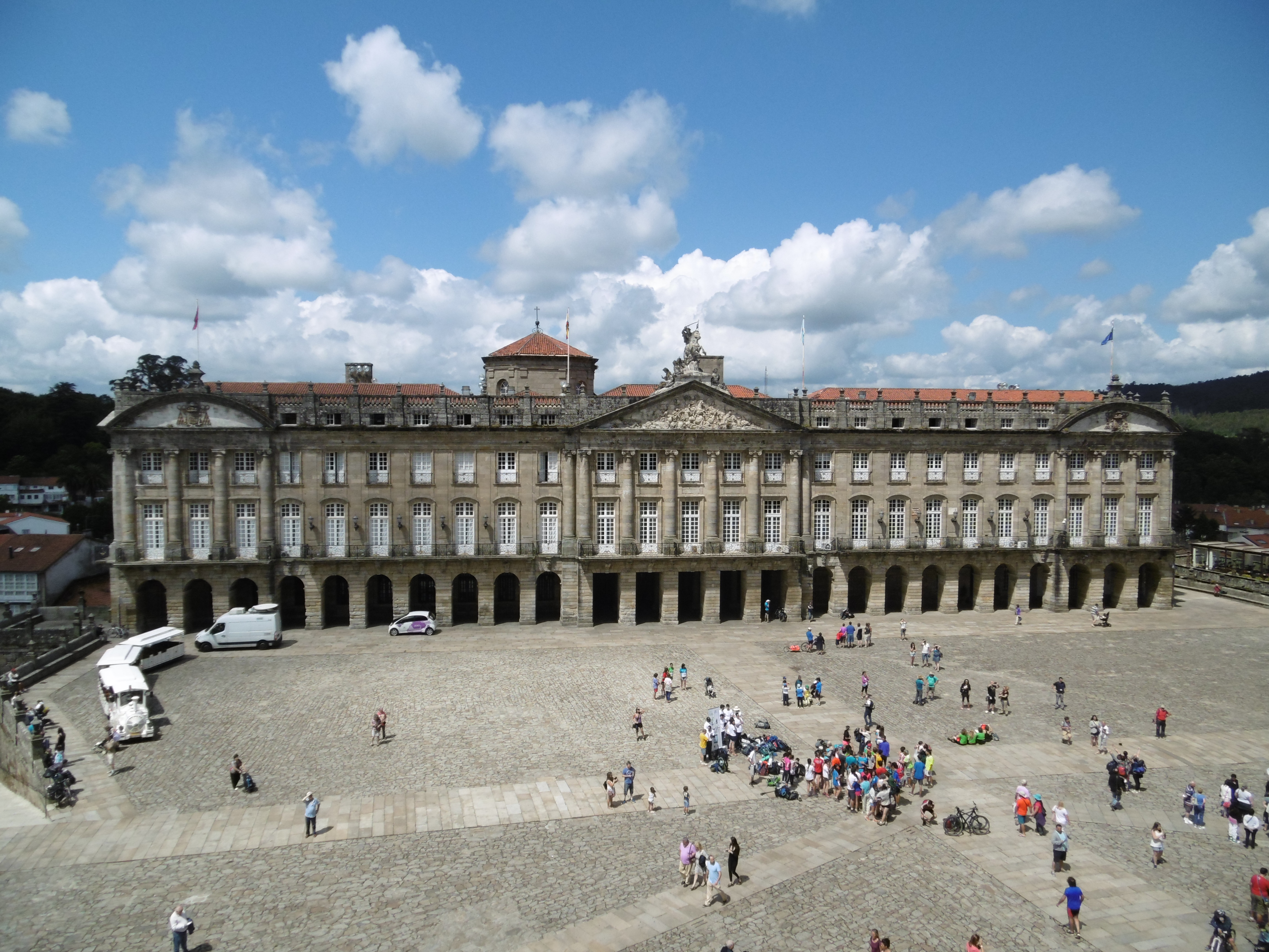 Pilgrims complete their way in the middle of the Obradoiro square to which all routes in lead. The building here is opposite the cathedral and is the Rajoy palace, parliament building of Galicia