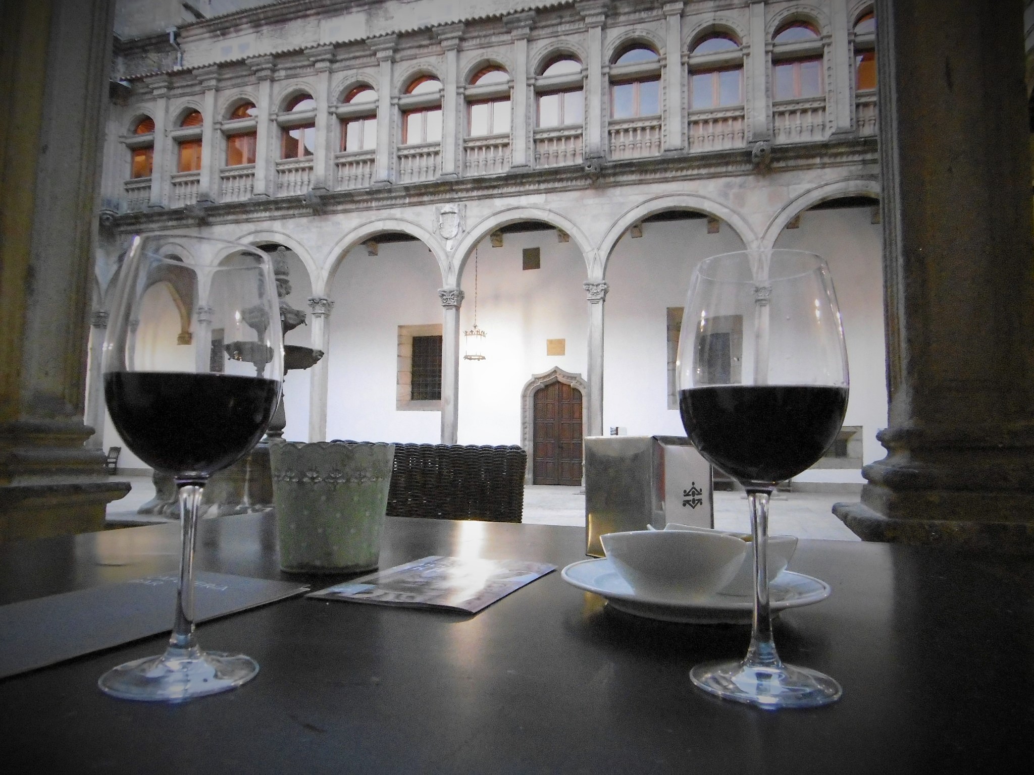 But it’s not all about churches and buildings and pilgrims and shops and history. As you might expect, we also eat while we’re here. The food is wonderful and so is the wine – more local, tasty, red and white, drunk in some amazing settings.