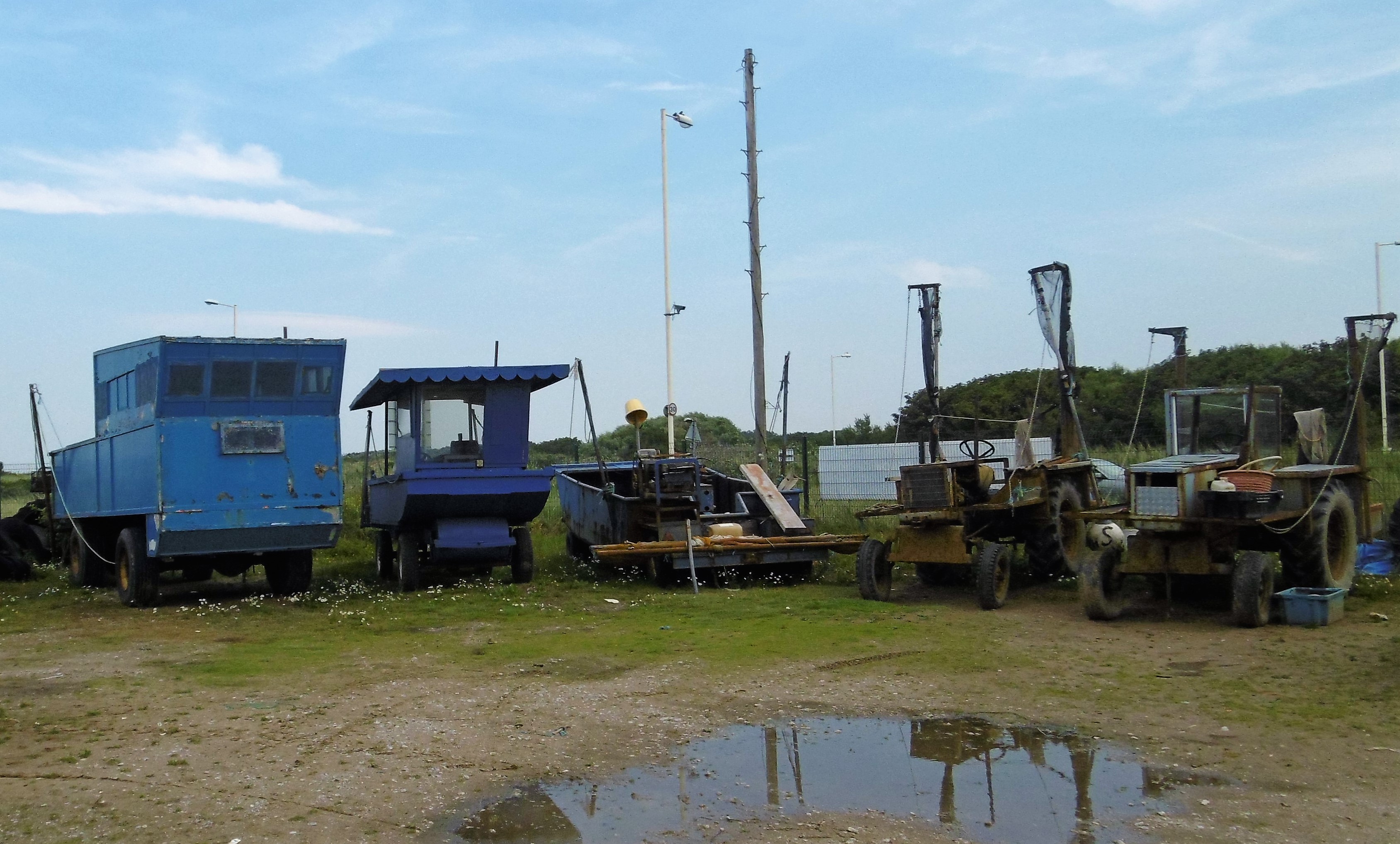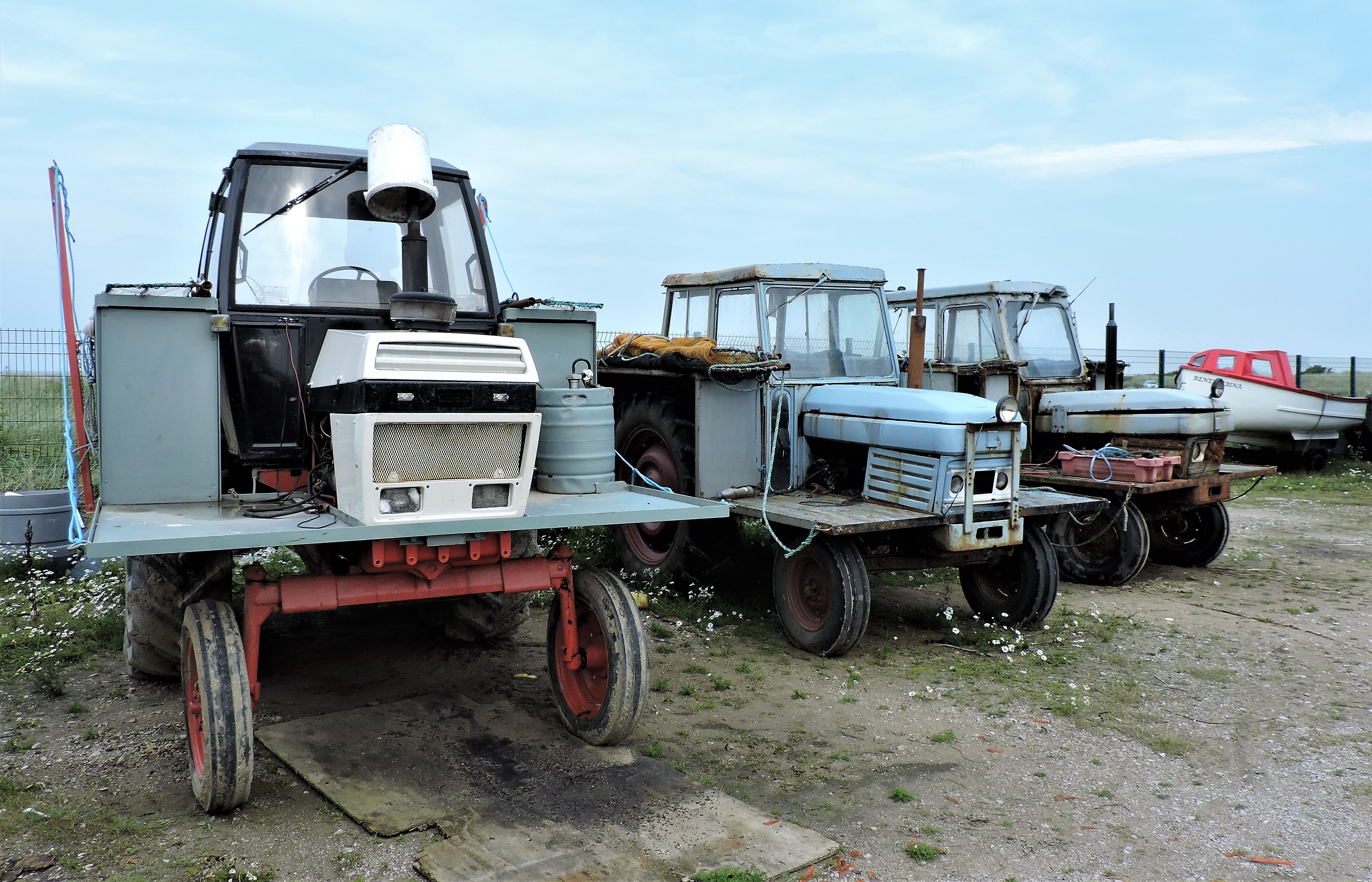 Kevin, the fisherman, wasn’t hard to spot – the one with the tractor. A cheery, chatty chap, he took us up to look at the oddball vehicles parked in their ugly compound.