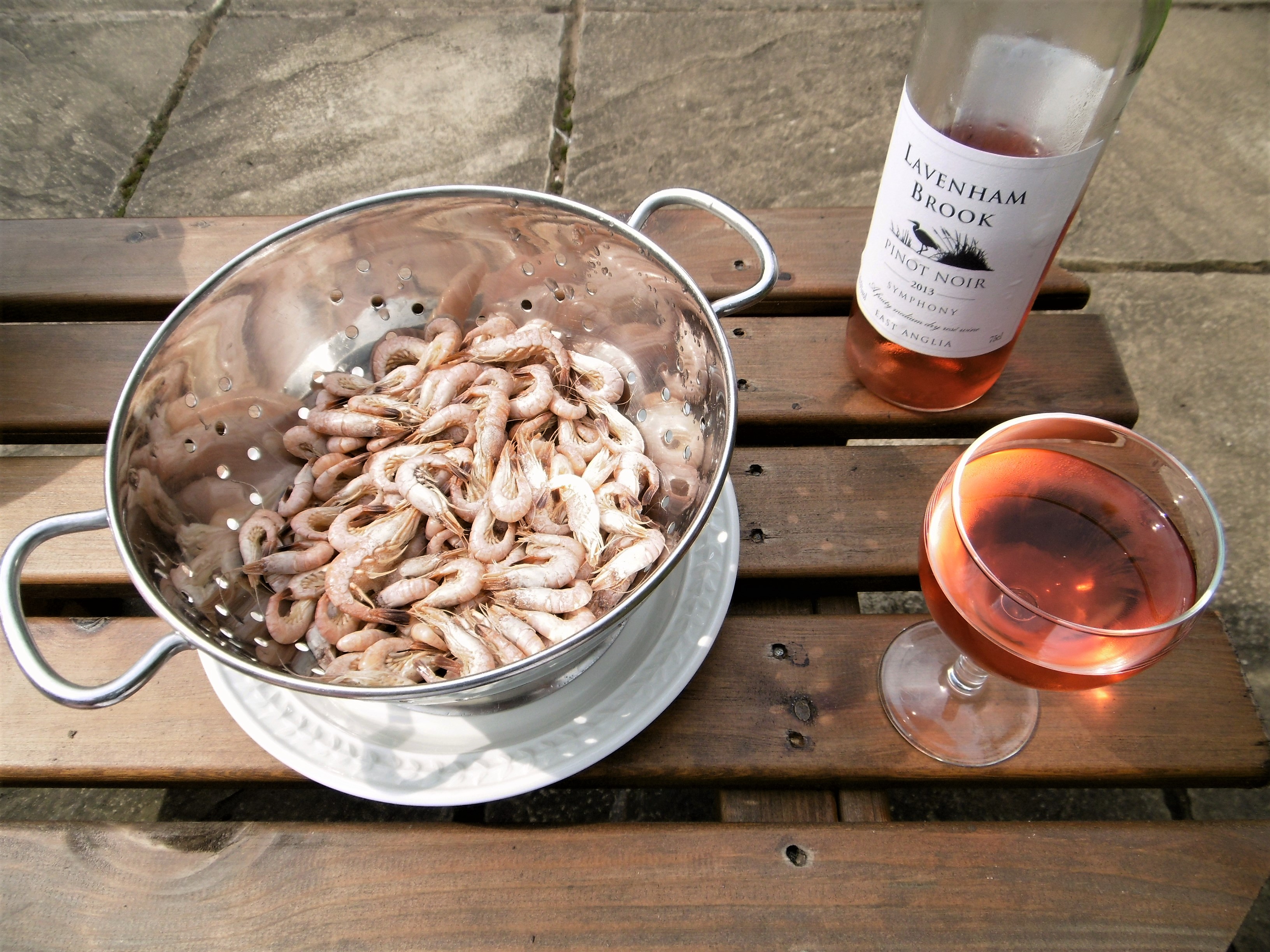 We sit drinking English rose wine – a mere 10.5% alcohol and beautifully tasty (thank you big sis) and feeling guilty – a little – because we can’t eat all the shrimps.