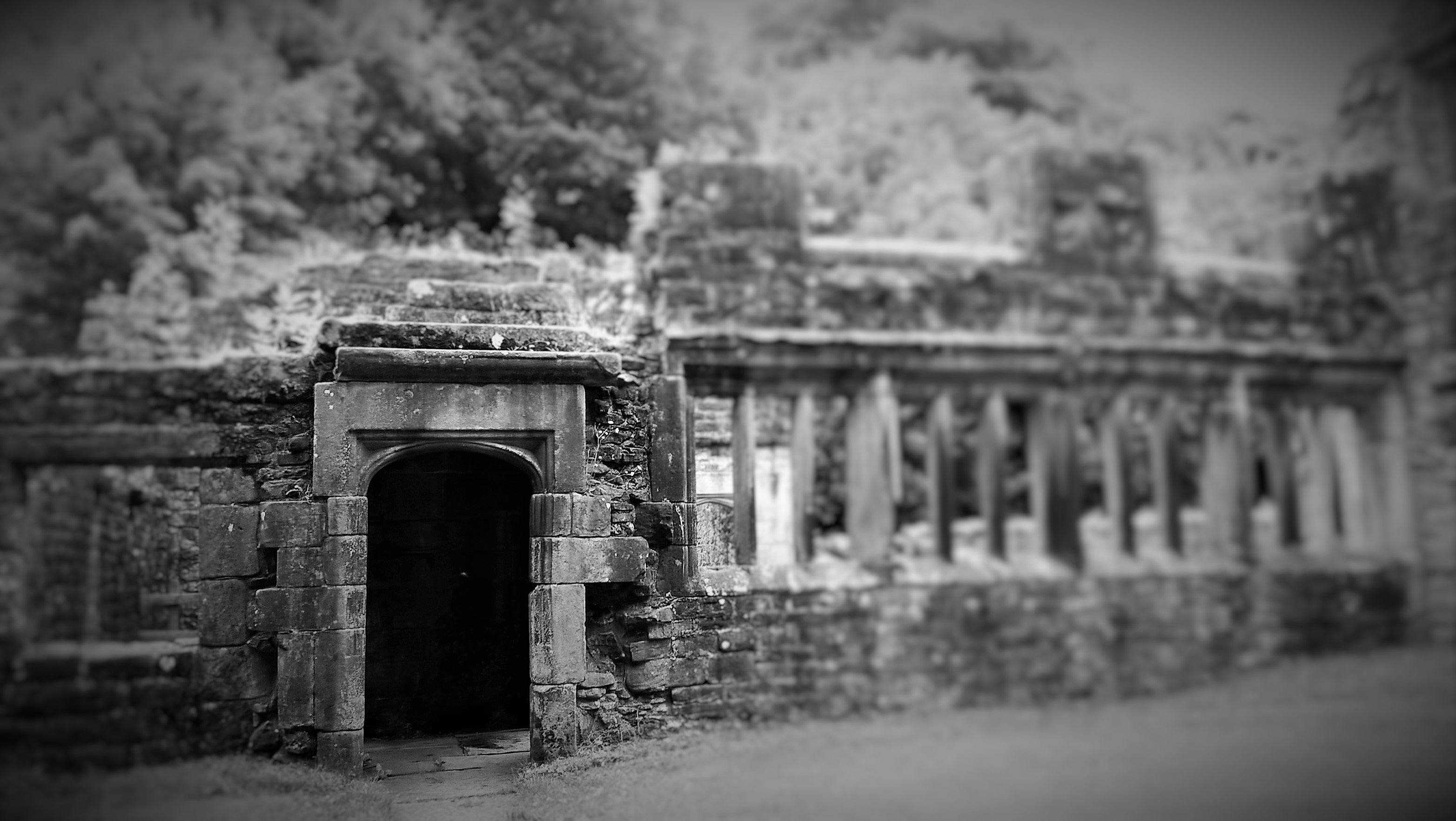 And there, beyond the trees, across the ford, over the bridge and tea brown water, it is: the ruin.