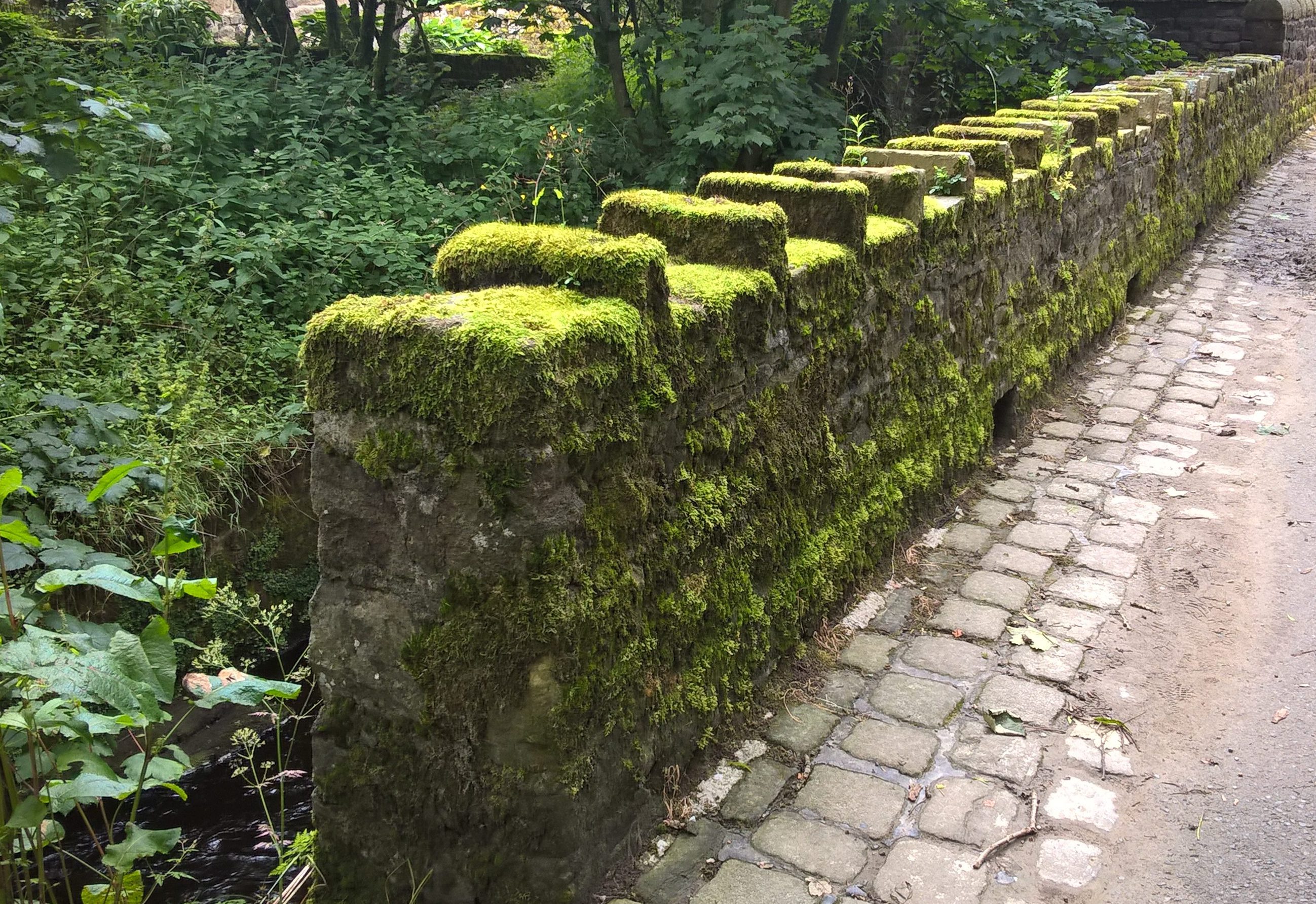 An ancient bridge, a ford, a stream. That tea brown, shallow water. Has it flowed down here from Brontë Falls?