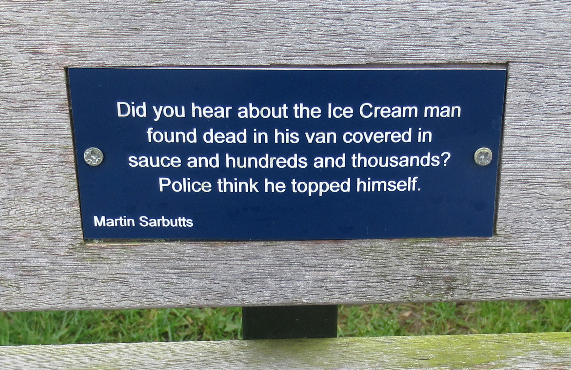 Well, our local resort has its own, rather lovely benches and – yes – many of them are sad, heart-warming, caring little tributes. In silver. With teardrops, in the rain.