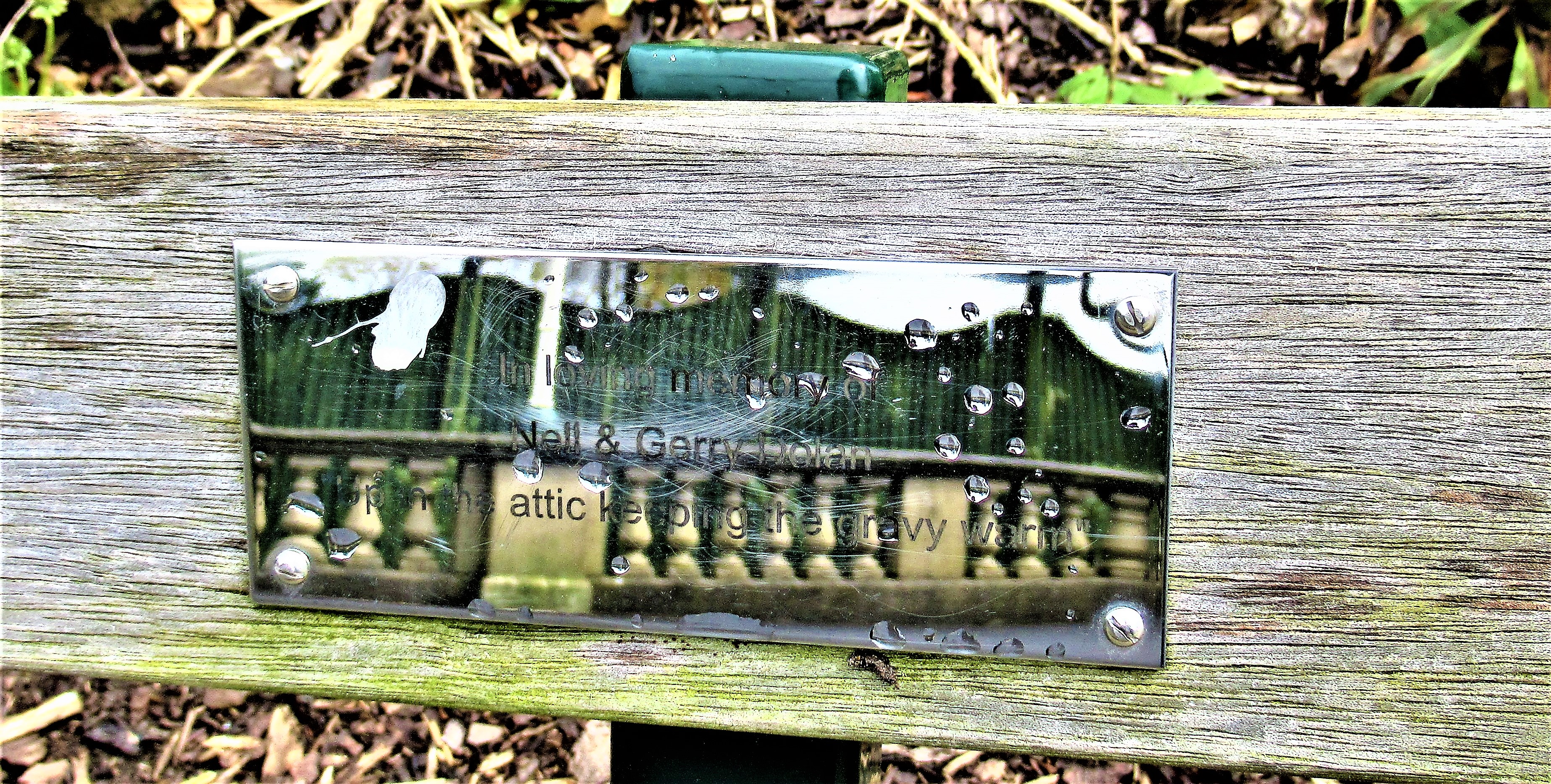As you may have noticed, I like to look at the labels on benches. There’s usually some poignant, loving, remark about a dear departed relative, a passionate fan of the park, the view, or the nature reserve. A tribute to a generous volunteer.