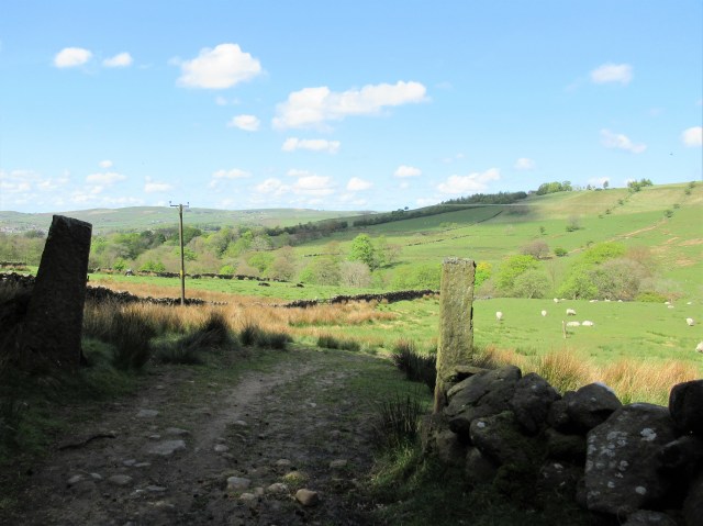 Past pairs of what I assume are old stone gateposts – but may be merely wall-ends. Whatever, they are, they’re sans gates.