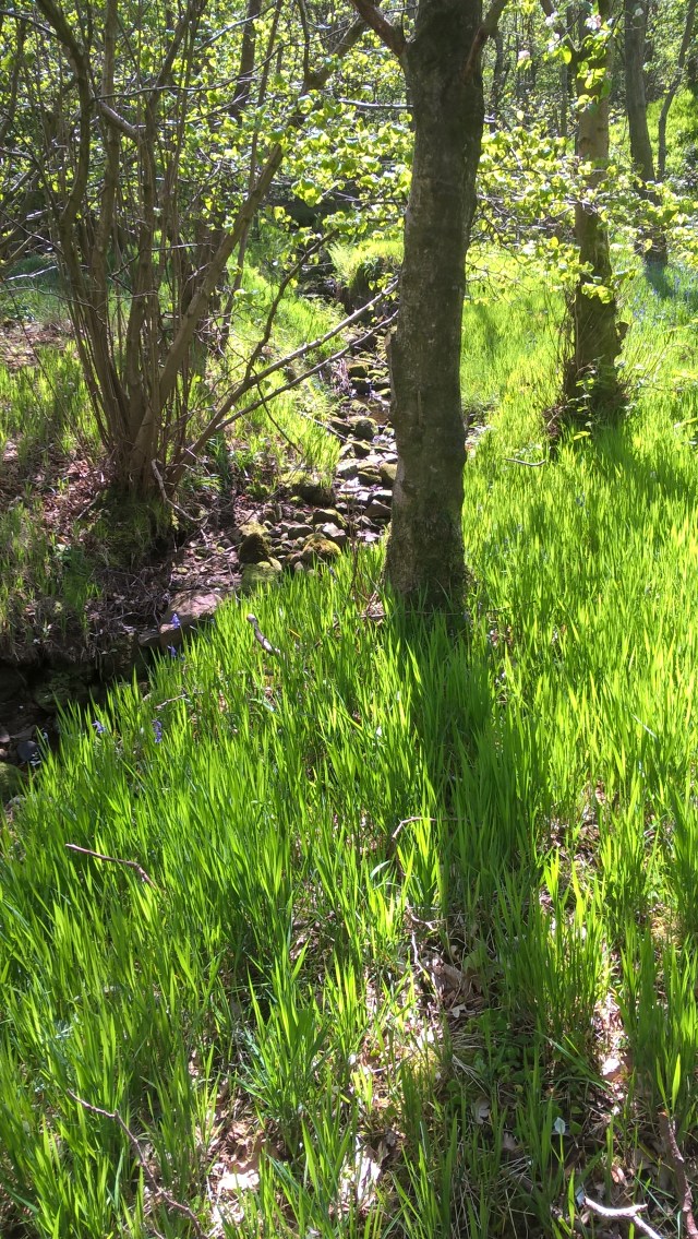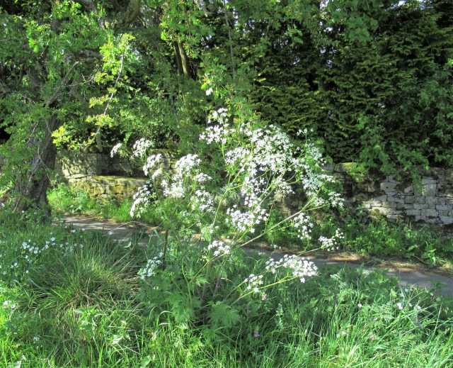 Tiny white flowers I can’t identify gleam in the shadowy verges, under moss-dressed dry-stone walls.