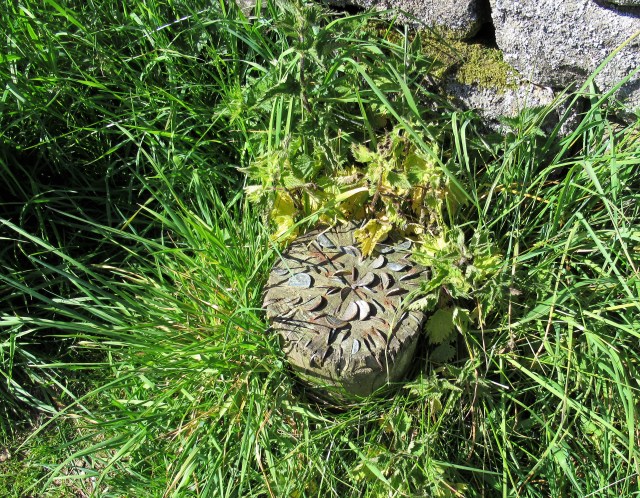 Yes, they are coins and I have seen them three times now at very long-apart intervals but can’t actually say if they have changed. Next time I go I will try and ask someone about them. Very unusual.