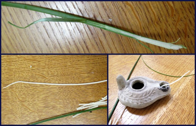 Reeds like the ones in the picture above can be used as wicks in oil lamps as I learned on a school trip.The lamp is Roman and belonged to my father