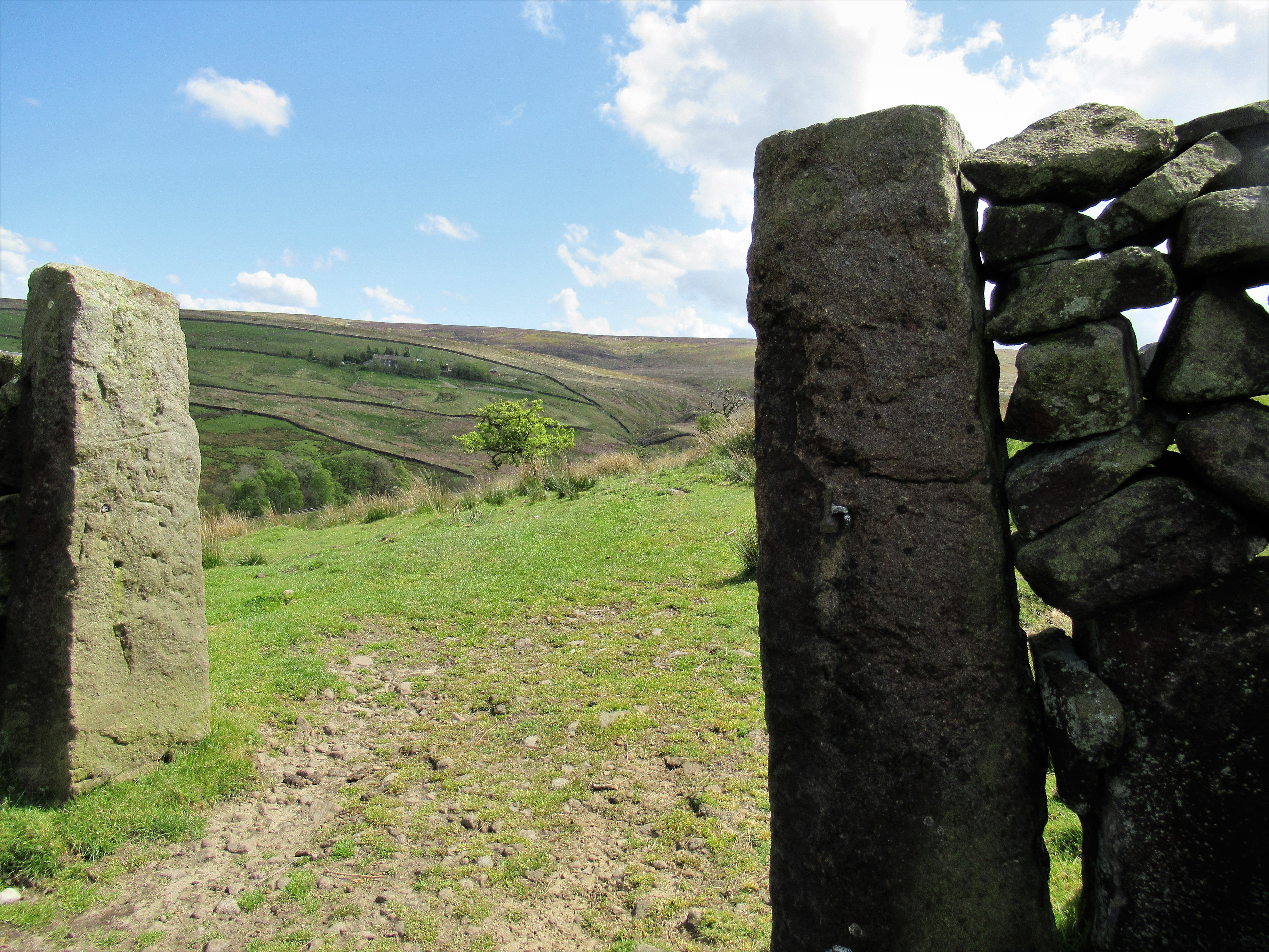 Past pairs of what I assume are old stone gateposts – but may be merely wall-ends. Whatever, they are, they’re sans gates.