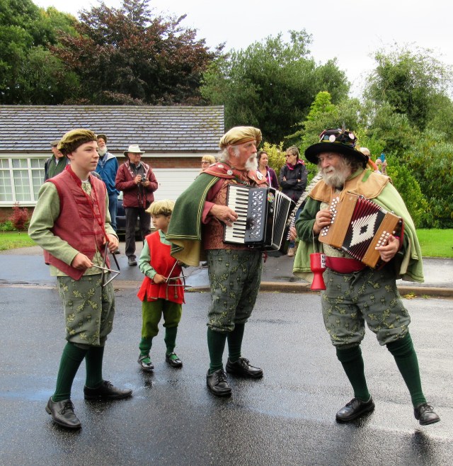 The troupe included wandering musicians, a jester with pig’s bladder on a stick and Maid Marian – a man in drag.
