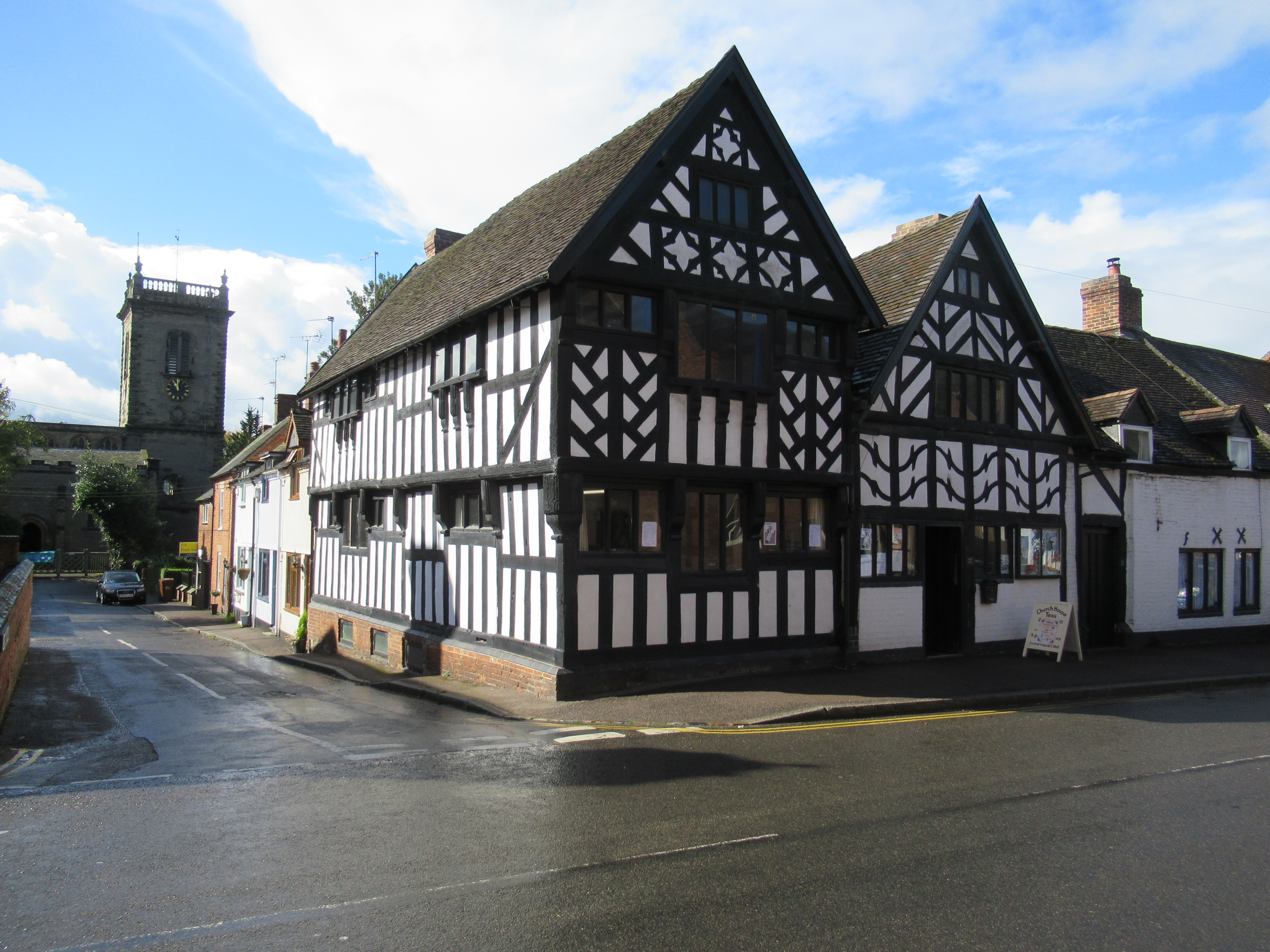 The hexagonal Buttercross,, probably 17thC; the old Goat’s Head Inn possibly late 16thC; rising in the background the tower – replaced in 1688 – of St Nicholas’ church (and that annoying white car in the middle isn’t ours btw). Dates according to Pevsner
