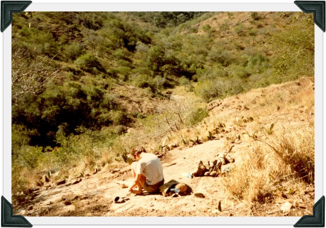 The prof & I centre,inside the cave, ‘digging’ (can’t remember names of the other 2, sadly) & getting on famously – no idea where the guy I arrived in Swaziland was at this point! Ahem.