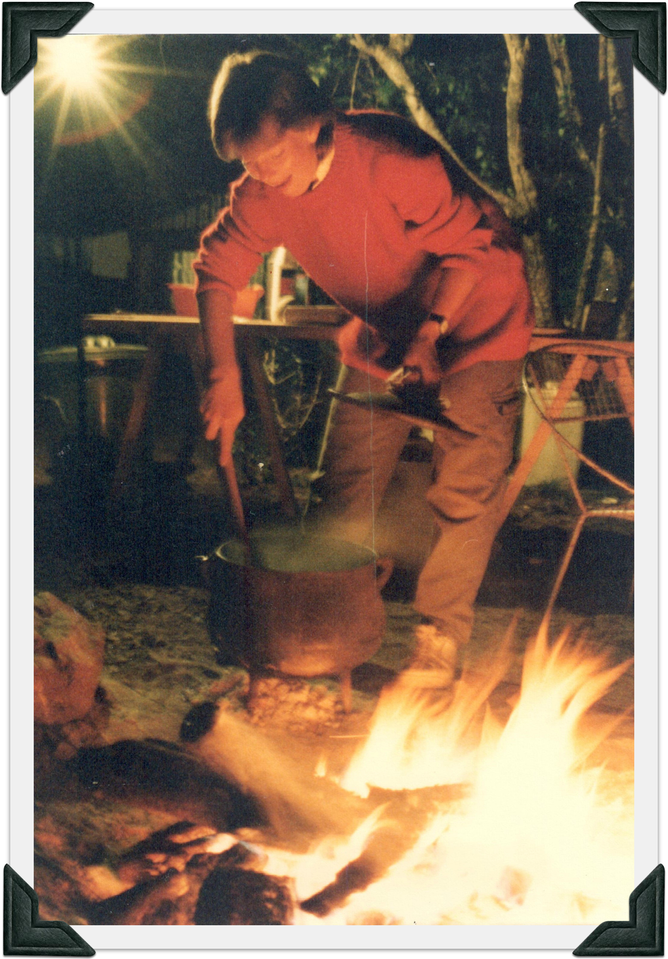 The pictures – well, to be honest, I was thrilled att eh scans – hd I kept the pictures more carefully they would have been even better but the colours that came through and the detail really amazed e. It was a cheap click and snap camera – probably a Kodak Instamatic or some such! The better pictures – like the one of me stirring the cauldron – were taken by others. 😉