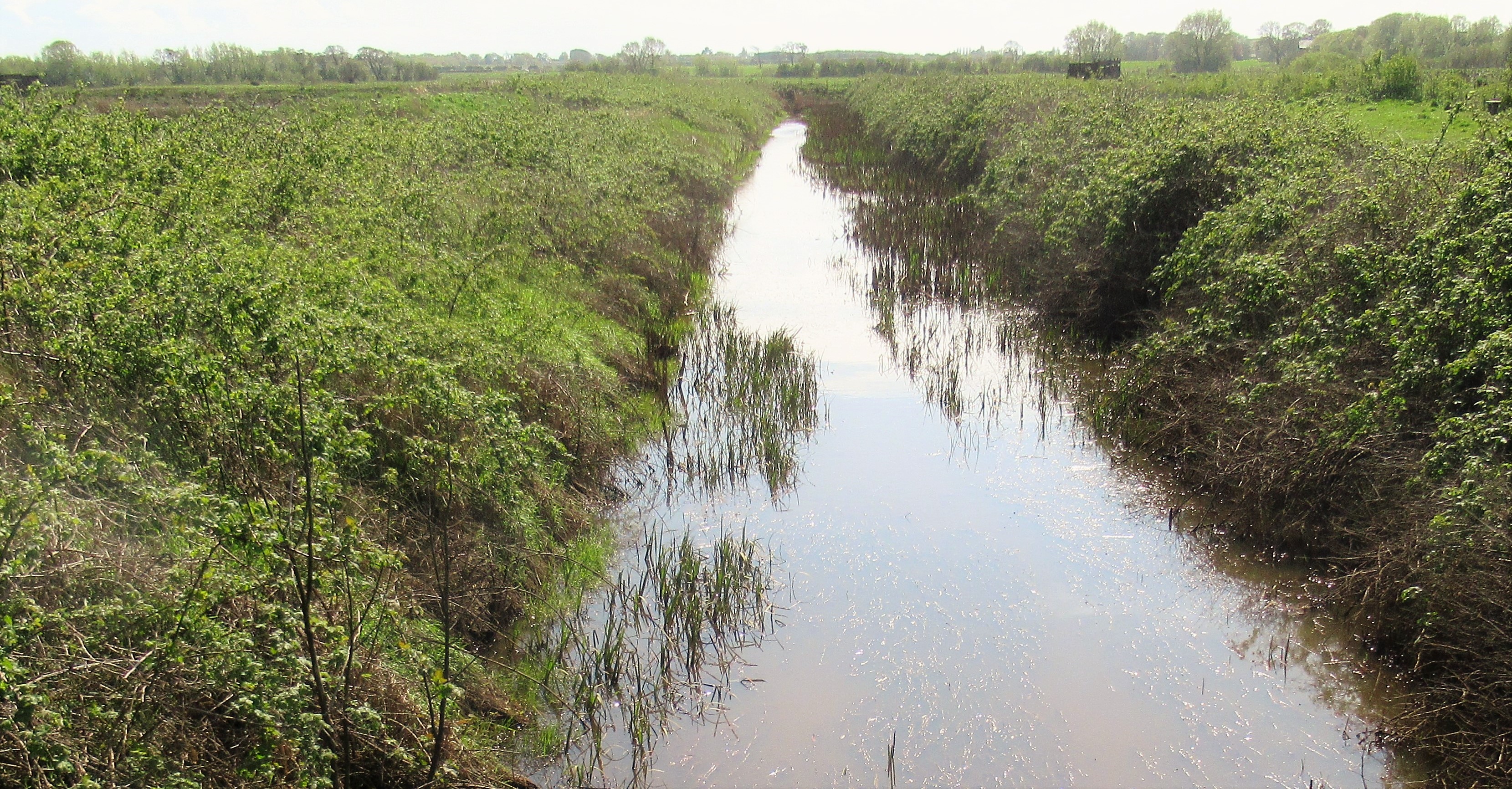 A big drainage ditch – rather lovely I think, especially as the swifts and swallows squeal up above