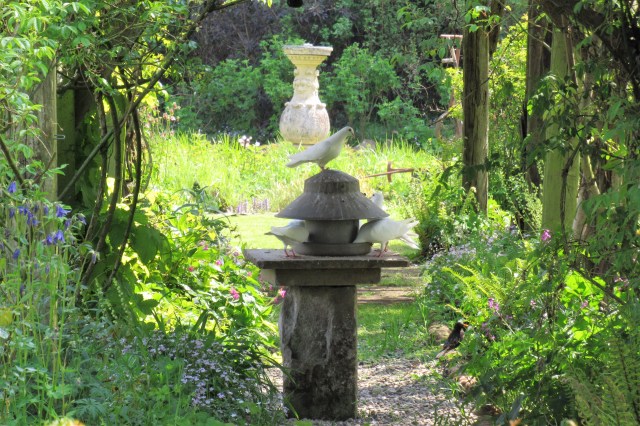 Doves seeking shade at Stydd Gardens, a lovely relaxed restaurant in old glasshouses near the village