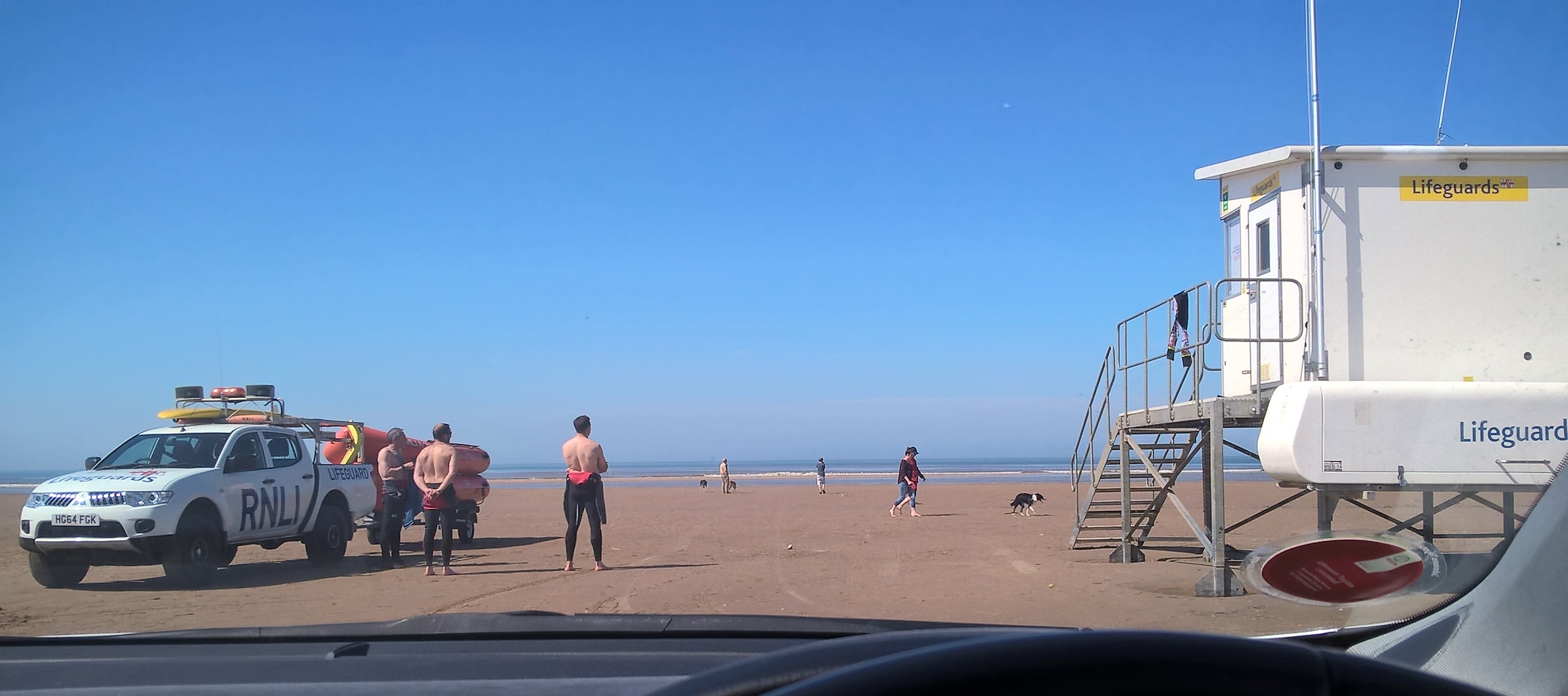 Lunching in the car, while male lifeguards wait for the female lifeguard to dress Yes that’s the only reason I took this picture showing half naked men