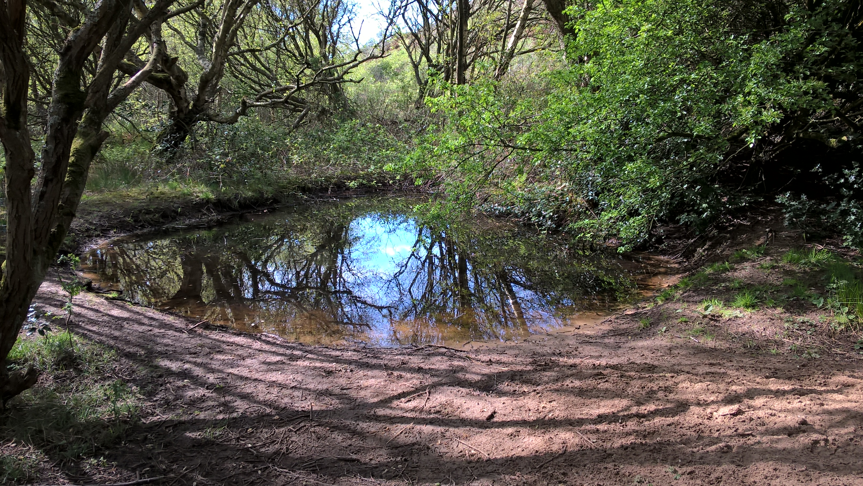 Magical slacks (pools),  filigree branches, reflections and shadows amid spring’s burgeoning greenery