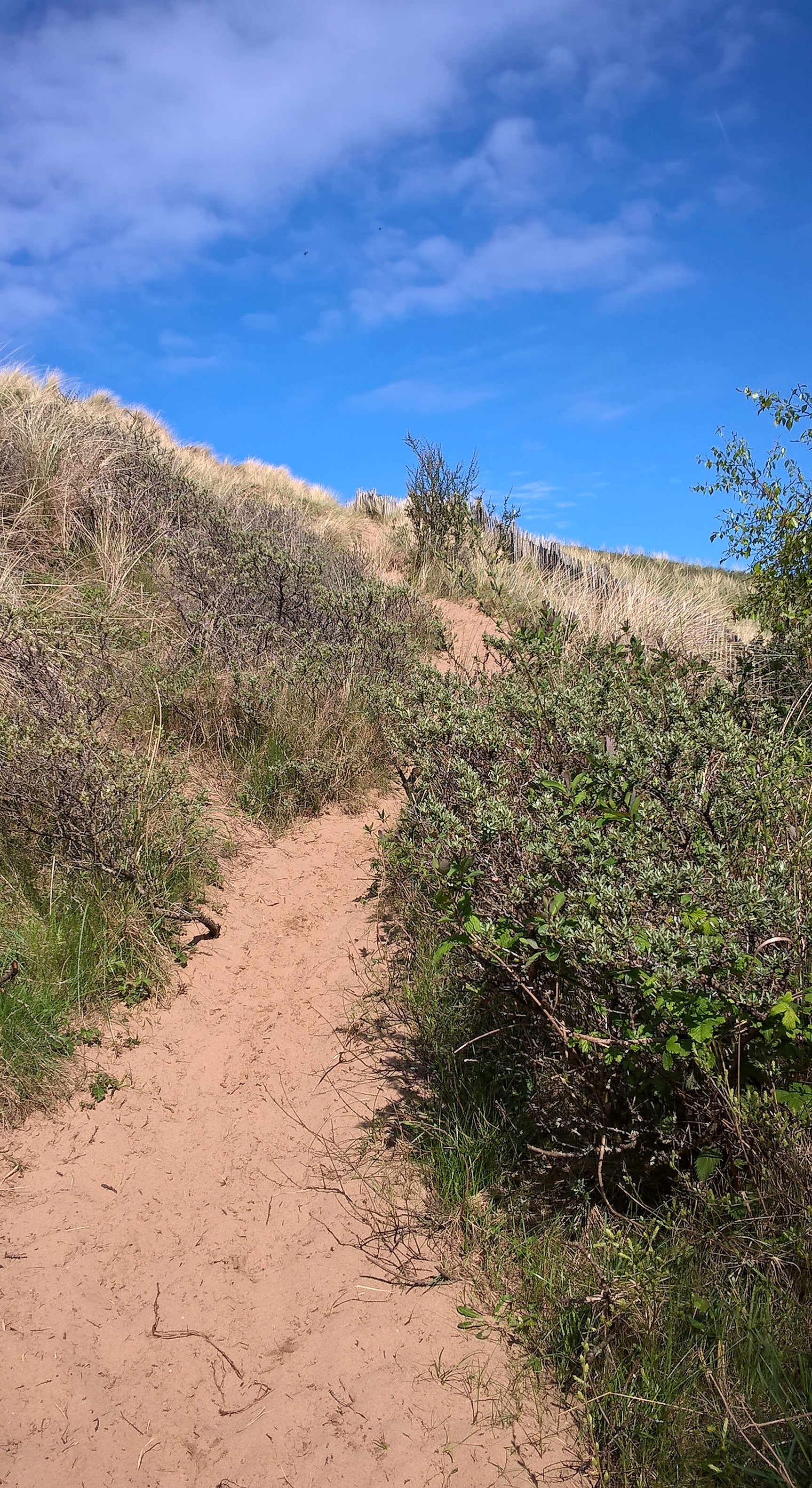 My neighbours, Carole and John, introduced me to the dunes that wrap around us, amid the golf course which I wrote about here – and now I’m hooked. Carole recently told me I could start from the other direction, Ainsdale village – it’s wonderful!