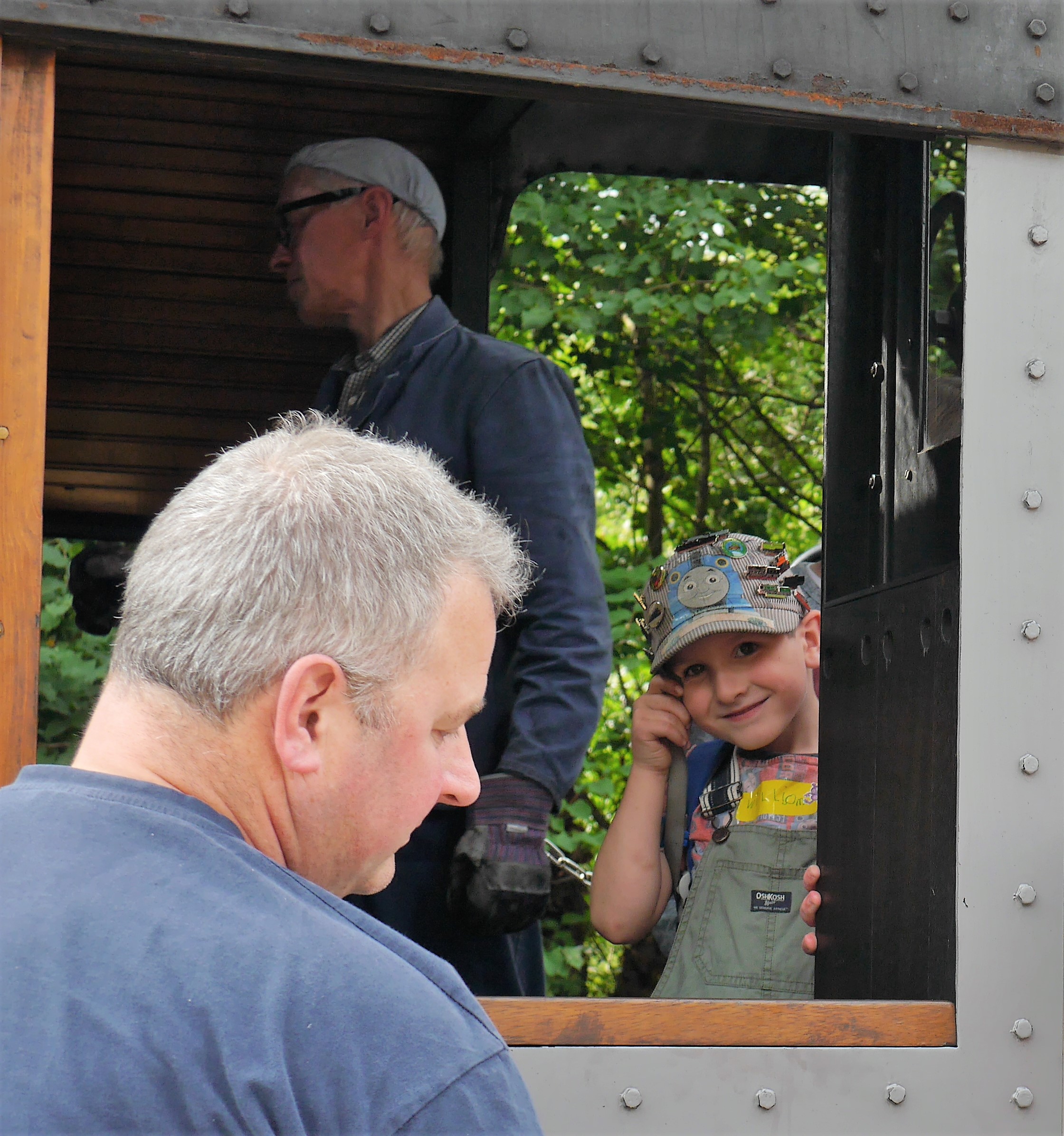 Now that’s a happy face. In with the engine driver! Dad in the foreground (envious I suspect)