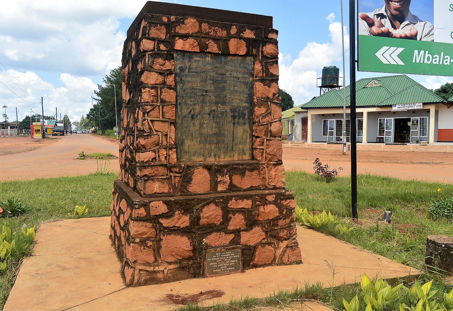 I put ‘East Africa’ in inverted commas because my first brush with its legacy came in South Central Africa – Zambia to be precise. There I saw a small – and not very visible – memorial on a roundabout in a small – and not very visited – town.